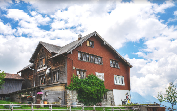 Die herzige kleine Alpwirtschaft mit Terrasse und schönem Ausblick ins Rheintal und auf den Kamor ist nur zu Fuss oder mit dem Bike erreichbar.